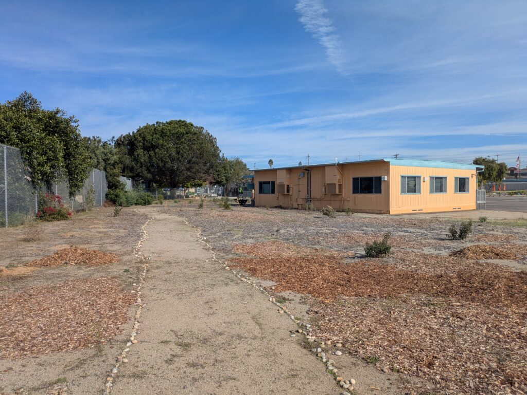 This section is larger and farther from irrigation. There are two native plant species that grew without any external help, but later died. Plant survival is much lower here, although with additional watering and mulch covering, we have had some success.